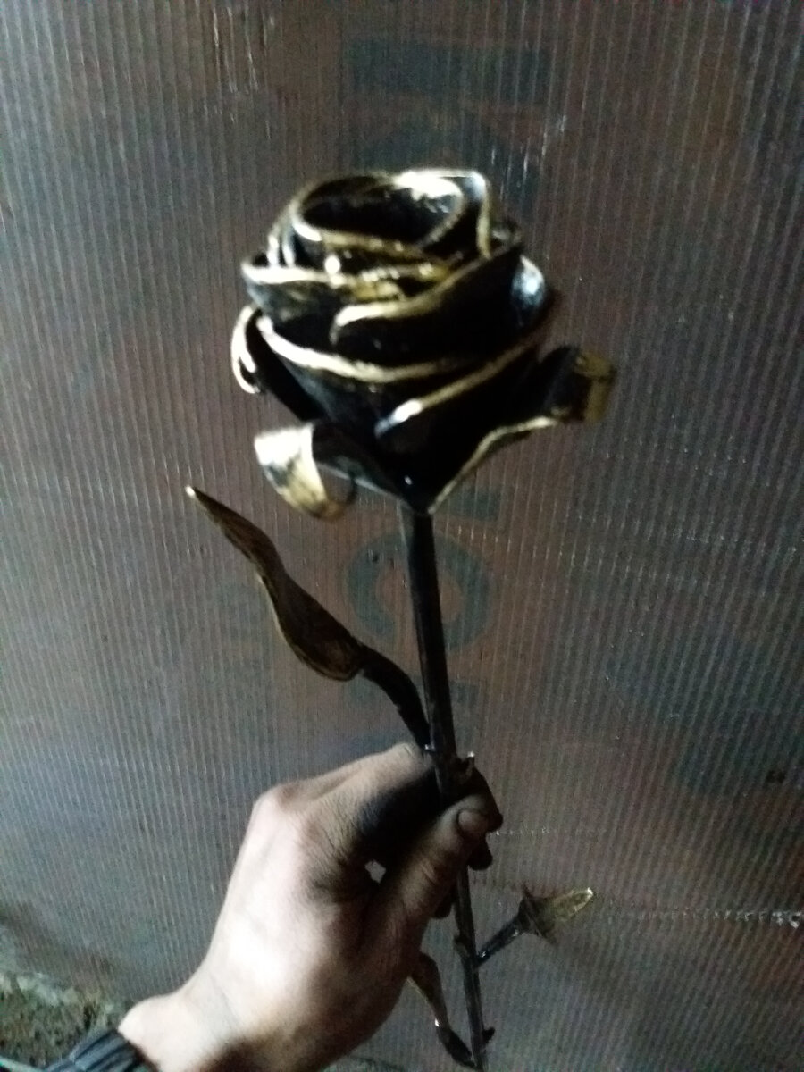 Всем привет!!! Вот такую розу я изготовил 4 года назад. Делал не один, а на пару с кузнецом, так как только учился. Я напилил заготовки, а кузнец начал ковать. Сперва все заготовки поместили в горно, разожгли его, затем начали долбить и придавать форму на наковальне липесткам. Гнули все на горячую. После сборки покрасил все порошковой краской Ral 9005,затем нанёс патину. Получилась вот такая красотень. А этот вариант я делал уже полностью сам, только гнул на холодную. Мой вариант идёт уже попроще) Изготовление этой розы практически не отличается от предыдущей. Эта и по весу, на много легче. Покрасил так же порошком В принципе все. Всем спасибо за поддержку!!! И ещё : напишите какой вариант вам больше по душе!!!
