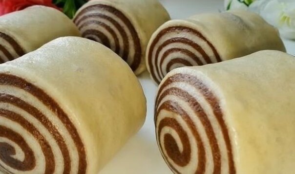 Вкусные китайские булочки, приготовленные на пару, – это что-то интересное и необычное. Приготовление не занимает много времени, готовится все достаточно просто и быстро. Продукты Мука - 235 г + 1 ст.л. Крахмал кукурузный - 15 г Сахар - 50 г Дрожжи сухие - 4 г Масло растительное - 15 мл Молоко - 170 мл Какао-порошок - 8 г Приготовление : Как приготовить китайские паровые булочки: Смешать муку, крахмал (он впитывает влагу и придает рыхлость выпечке, допускается заменить мукой), дрожжи и сахар. Влить подогретое молоко и тщательно перемешать. Добавить растительное масло без запаха комнатной температуры. Замесить липкое тесто для булочек. Разделить тесто на две равные части (воспользуйтесь весами). К одной части добавить муку, примерно столовую ложку, и месить тщательно, пока тесто не перестанет липнуть к рукам, минут 7. Накрыть и оставить на 5-7 минут. Ко второй части добавить какао-порошок и замесить до однородной окраски и структуры. Шоколадное тесто тоже оставить на время. Каж