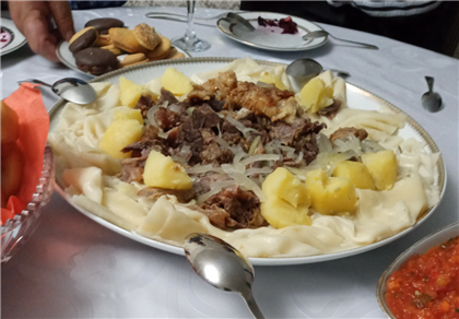 Тесто для него называют по-разному. На западе Казахстана, а также в Саратове и Астрахани используют то самое слово "инкаль". На севере говорят "жайма" или "құлақнан". На юге обычно говорят "қамыр", но встречается и "шелпек". А вот "ет" он везде ет, даже если это не баранина или конина, а осетрина. Мясо обычно подают достаточно крупными кусками, которые разделываются уже за столом. Сорпа, которая подается к ет, и тұздык тоже, называются одним словом по всей стране. Но вот бешбармаком технически корректнее называть то, что большинство казахов знают как "нарын" - мелко нарезанное мясо и тесто в бульоне, причем они нарезаются заранее, до подачи на стол. Нарын нередко делают из остатков мяса и теста, которые готовили для ет. Для многих моих родственников нарын - это блюдо, которое едят на следующий день после праздника, но некоторые из них так его любят, что их жены делают нарын и просто так. Почему ошибочное название прижилось в Казахстане? Распространное мнение состоит в том, что это р
