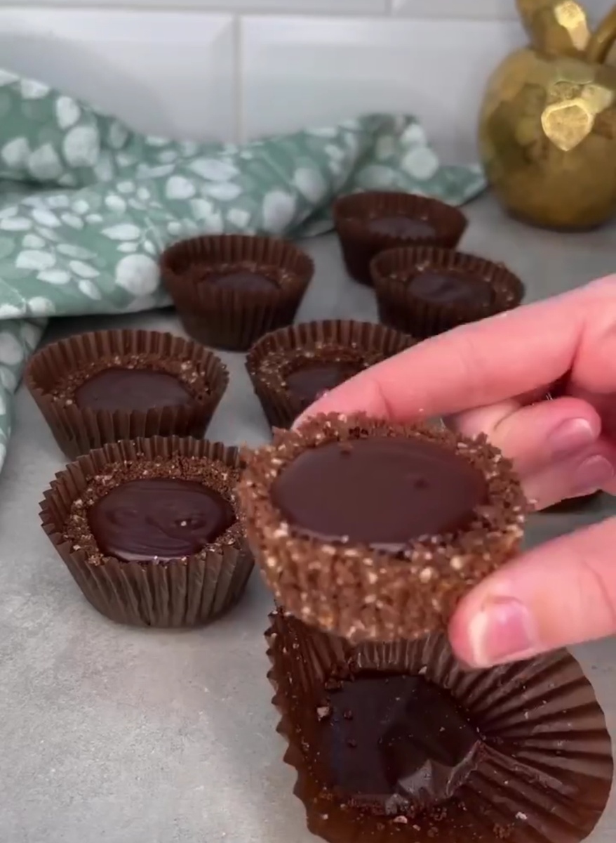 ОЧЕНЬ вкусный десерт!!! ⠀ Ингредиенты: Основа 🔸150 гр. печенья 🔸60 гр. сливочного масла 🔸40 гр. миндаля ⠀ Ганаш: 🔸100 гр. темного шоколада 🔸140 мл. сливок 33% 🔸10 гр. сливочного масла Приготовление: печенье смешать с миндалём измельчить до состояния крошки , добавить масло, хорошо перемешать, взять формочки для кексов , полученную массу разложить по формочкам, сформировать основу в середине сделать углубление ( удобно делать рюмкой) убрать в холодильник на пол часа, подготовить ганаш: шоколад и сливки соединить, довести до горячего состояния почти до кипения, добавить сливочное масло, хорошо перемешать, в углубления разлить ганаш, убрать в холодильник минимум на час . Получаем вкусный десерт, приятного аппетита!