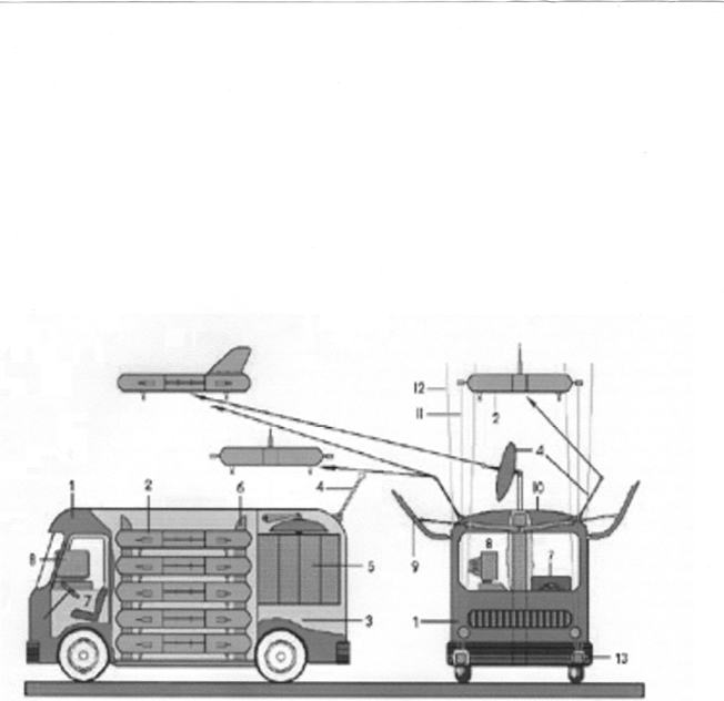 Такое конструктивное выполнение по существу представляет собой передвижной аэродром и обеспечивает мобильность и эффективность применения данной малогабаритной системы на больших площадях, в том числе, внутри города и на пересеченной местности.