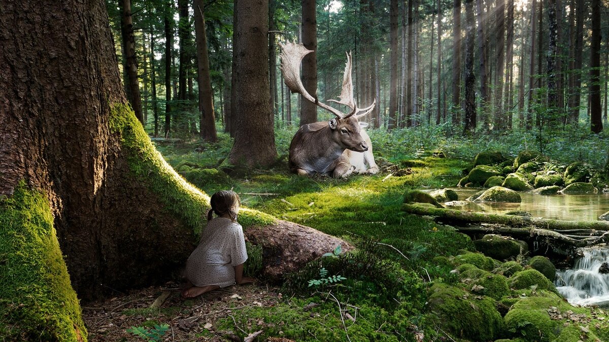 Вдруг услышала за спиной шаги. К ней подходил громадный лось. Паня не испугалась, она видела такого по телевизору. Только у этого рога шире и глаза какие-то совершенно человеческие. Так обычно смотрела бабушка, когда папа зазря на неё ругался.
