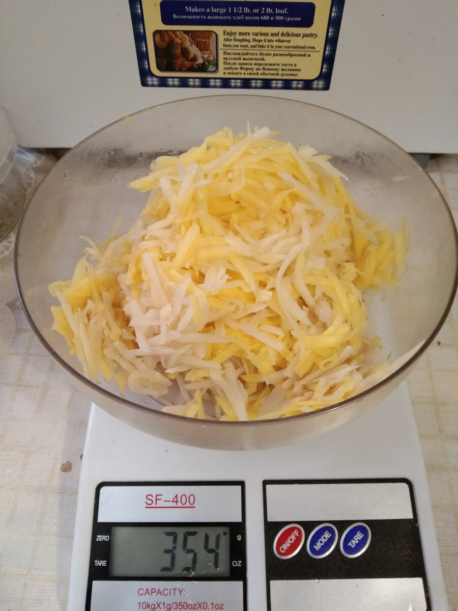 И снова здравствуйте! Сегодня 4 марта, и я пополняю копилку постных рецептов. В Пост всегда хочется разнообразить свой рацион, чтобы он не казался скучным и невкусным. Держите рецепт драников. Дополнением к картошке сегодня будет кабачок и морковь. Количества продуктов можете брать любое, главное потом правильно рассчитать КБЖУ (если вы считаете). Я рассчитала на те продукты, что у меня есть. Для драников мне понадобилось: тертый картофель - 354 г; морковь - 42 г; кабачок - 76 г (у меня тертый замороженный); любая зелень (у меня укроп) - 20 г; пшеничная мука (берите любую, какая есть под рукой) - 50 г (две столовые ложки). соль, черный перец (специи по вкусу и желанию). Вес продуктов - 555 г, КБЖУ: 600/13,2/12,2/109,3 1. Трем на крупной терке картофель. Сок я не отжимала. 2. Трем морковь и добавляем к картофелю. 3. Добавляем тертый кабачок. Поскольку у меня кабачок замороженный, я его оттаяла и отжала воду. 4. Достала из морозилки замороженный укроп и добавила в тарелку. 5. Всыпала 50