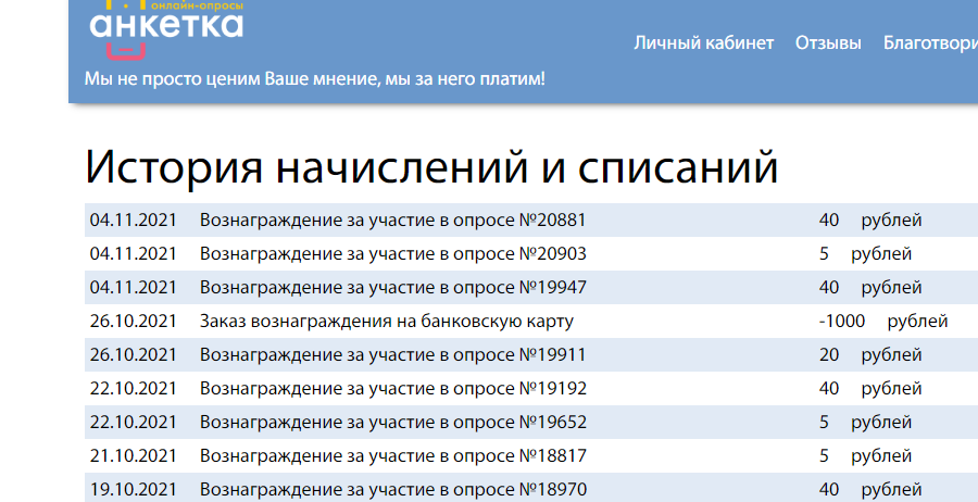 Многие ищут ответ на вопрос можно ли заработать на анкетка ру, сколько можно заработать и т.д. ищут отзывы. Поэтому сегодня решил написать небольшую статью отзыв на эту тему. Сам я лично знаком с этим сайтом уже с 2019 года. Зарегистрировался и мне начали приходить на почту письма с приглашением пройти опросы. Честно скажу, что некоторые опросы очень запутанные и сложные, на заполнение которых уходит много времени, внимания и сил. Редко, но бывает опросы просто зависают в самом конце и всё, денег не получишь за них, считай пустая трата времени. Однако, встречаются и легкие опросы, прохождение которых не составит особого труда. адует то, что если даже ты не подходишь для прохождения конкретного опроса, то все равно можно заработать минимальную сумму 5 рублей. Письма с предложением пройти опрос от Анкетка ру приходят часто и ты можешь заработать в день минимум 5 рублей, а если полностью пройдешь опрос то конечно же больше. Еще один минус заработка на опросниках – это нехватк