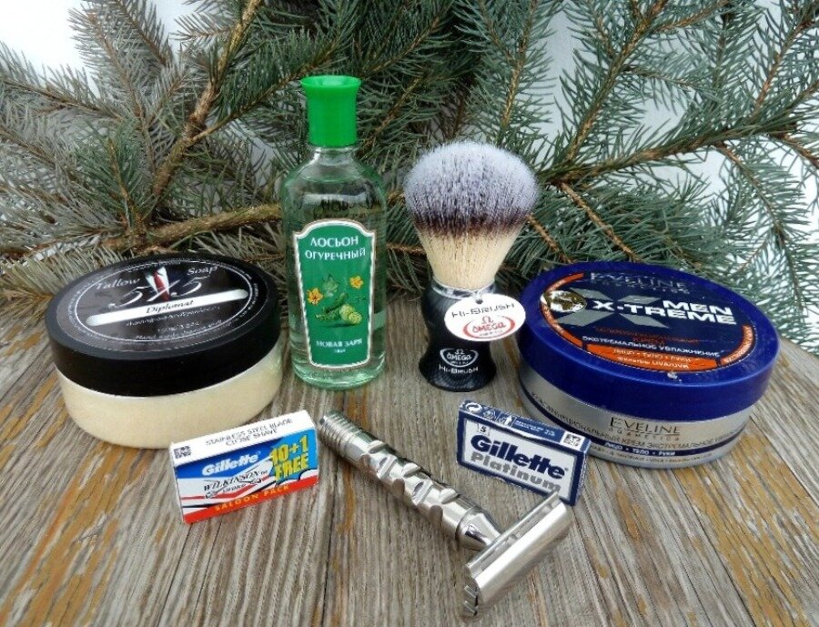 Теперь проверим, как проведёт себя комбинированная бритва «CNC 316L» в бритье. При этом я использовал следующие бритвенные принадлежности: