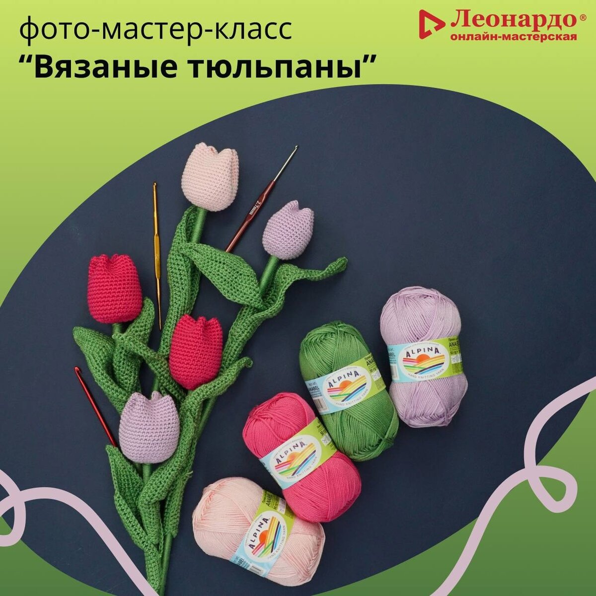 Подробный фото-мастер-класс для вас подготовила эксперт по вязанию Екатерина Голоха. Для букета мы подготовили подробный фото-мастер-класс "Вязаные тюльпаны". Составьте цветовую композицию вашего букета - выберите мягкую пряжу ALPINA из 49 цветов в интернет-магазине «Леонардо». Обратите внимание на тематические серии по вязанию крючком для разных уровней подготовки слушателей. Погружайтесь в творчество с Онлайн-мастерской "Леонардо"!