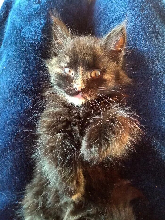 Первый пост - 3.5 часа назад мужчина нашел котенка в лесу, напоил сгущёнными молоком с водой и попросил помочь. Девочка очень слабая
