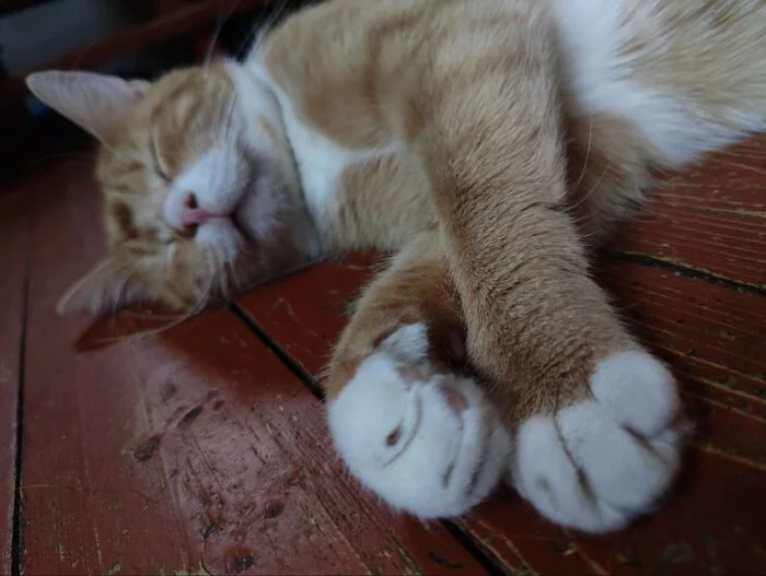 Бывший дачник - котик Батоша - наслаждает теплом от печки