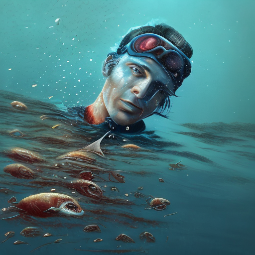 Вдруг он услышал громкий всплеск и увидел, как из воды выпрыгнула огромная рыба. Мальчик был заворожен этим зрелищем и решил последовать за ней. Он поплыл за рыбой, но она удалялась все дальше и дальше. В конце концов мальчик понял, что находится далеко от берега, и начал уставать.