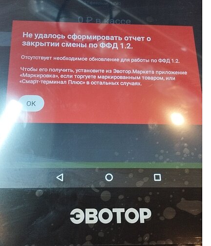 Эвотор ошибка Не удалось сформировать отчет о закрытии смены по ФФД 1.2. Отсутствует необходимое обновление для работы по ФФД 1.2
