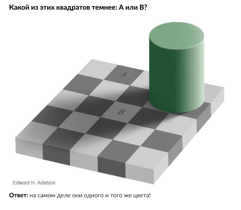 Известный бренд, многие из вас его видели. И ничего страшного, если и не видели. Квадраты А и В, на самом деле, одного цвета. Смотрю на них и не верю. Загрузил картинку в программку Paint , она встроена в мой компьютер, как бесплатное приложение. Может, у вас другая с такими же возможностями. А потом выкорчёвываю обозначенные поля и ставлю их рядом. Вот что получилось