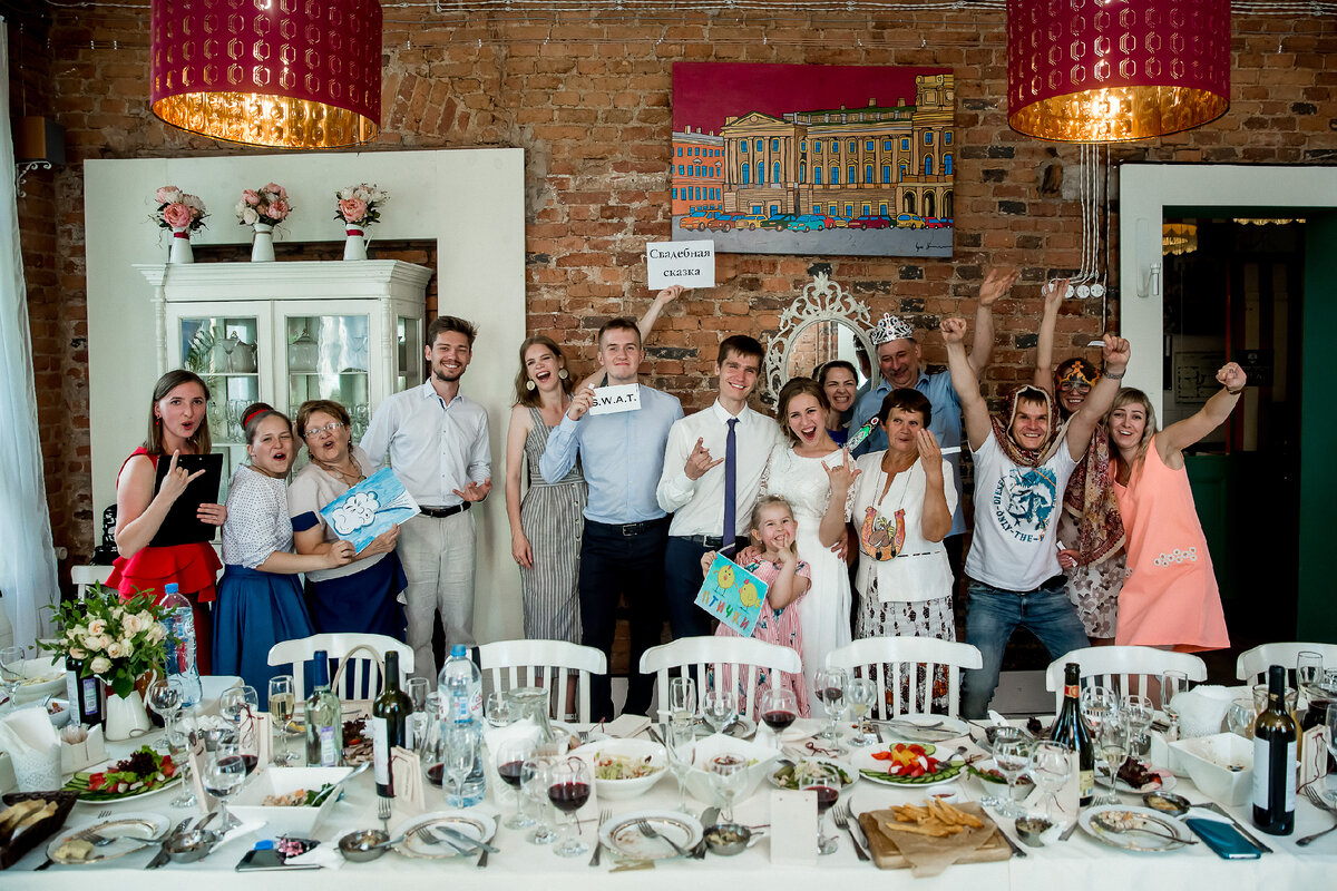 На ведущем мы тоже сэкономили. Поскольку мы сами и наше окружение люди творческой профессии, то эта роль досталась моей подружке. Мы потратили пару вечеров недели за 3 до свадьбы, чтобы создать канву нашего праздника, а остальное сделала она. Нам нужно было лишь купить кое-что из реквизита. Я безмерно благодарна Наташе за ту атмосферу праздника.