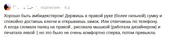 А ещё представьте себе боксёра, у которого удар, что левой, что правой, силён и точен. Или пианиста с виртуозными пассажами обеими руками. Сложно спорить с тем, что амбидекстром действительно быть хорошо... Однако вот это пишут тоже судя по всему амбидекстры: Есть, есть у право-левшей свои проблемы. И всё потому, что обоерукость в отличие от праворукости или леворукости - это всегда какой-то сбой, какое-то отклонение в развитии. Судите сами, гены праворукости и леворукости существуют, хотя и не от них одних эти признаки зависят, а вот генов амбидекстрии нет. Значит, нет у природы амбидекстров в планах. Откуда же они берутся? Первая причина В лучшем для амбидекстра случае обоерукость - результат его переучивания в "нормального" человека. Вторая причина Хуже, если причиной явилась патология, возникшая на этапе внутриутробного или раннего детского развития. Из-за внутриутробной инфекции или родовой травмы, или дефицита необходимых ребёнку веществ могут возникнуть проблемы в момент форм