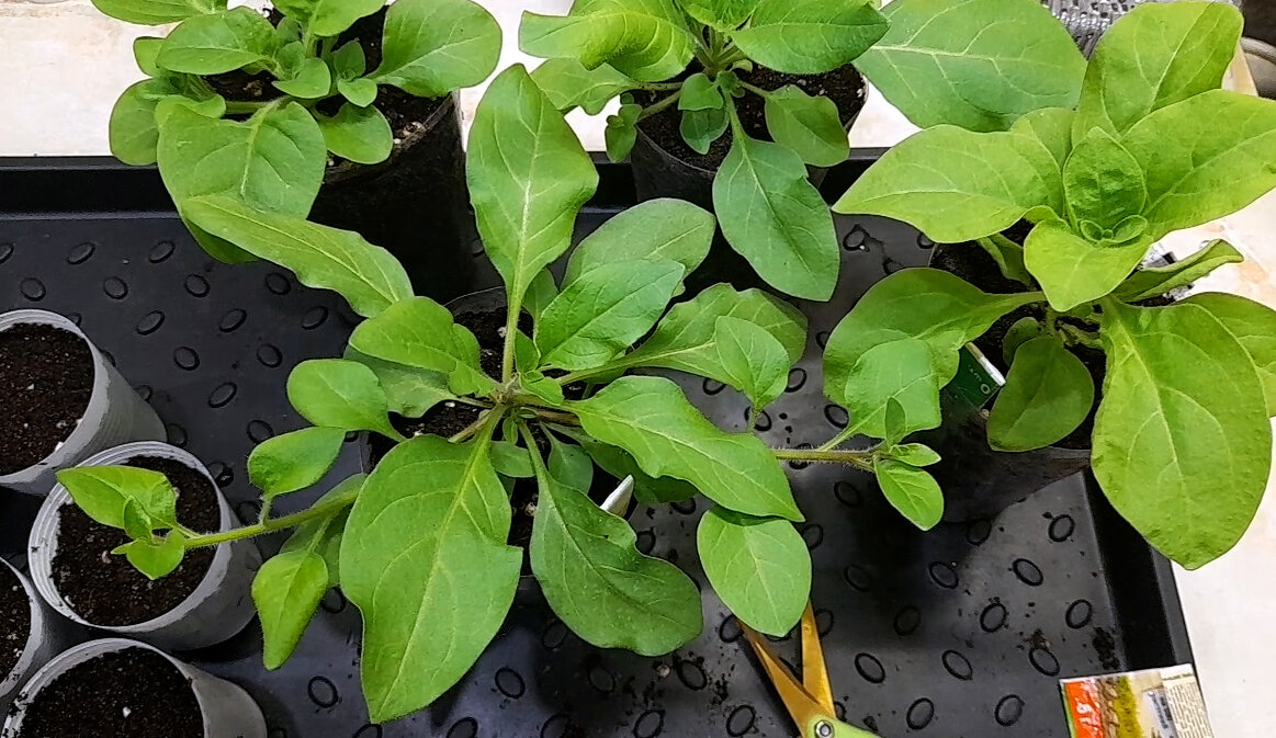 Петуния, которую я сеяла 23 декабря, уже подросла и некоторые экземпляры уже готовы черенковаться. Это петунии сорта ТАЙДЕЛ ВЭЙВ ЧЕРРИ, ШОК ВЭЙВ ДЕНИМ и ИЗИ ВЭЙВ ЕЛЛОУ. Все они развиваются по разному. У одних взяла на черенки боковые побеги, у других верхушечный. Черенковать петунии очень просто, уж точно не сложнее чем другие растения. Нарезаем черенки, убираем нижние листья. Готовим стаканчики для черенкования, делаем в них углубления. Опудриваем черенок стимулятором корнеобразования. Помещаем в грунт и обжимаем. В стаканчик ставлю бирку с сортом и датой черенкования. Поливаю раствором фитоспорина. И отправляю в тепличку под лампу. Начало положено, первые пять черенков пошли в тепличку. Черенковать планирую весь март и до середины апреля.