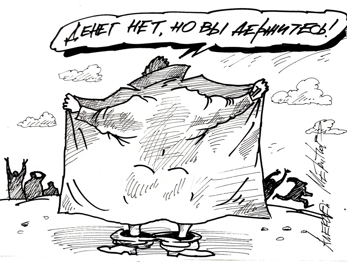 Вот этот рисунок А.Меринова: Тут какая штука... Для большой массы населения ровным счетом ничего не происходит и не произошло. В.йна для них - это то, чем занимаются большие дяди в Кремле, она от них как бы далеко - в их положении ничего не изменилось: им не нужна ни свобода СМИ, ни независимость судопроизводства, ни свободные выборы, ни разделение властей и прочая, и прочая. Им это раньше не было нужно и сейчас ни к чему. Им ни к чему свобода передвижения по миру, возможность повысить свое благосостояние, дать детям образование, заняться здоровьем и прочая, и прочая. У меня один многолетний знакомый, когда я еще проживал в России в Москве, однажды встретил своего бывшего сослуживца, который собирался с семьей поехать отдохнуть в Италию. Диалог такой состоялся. Знакомый: А чего ты туда едешь, чего ты там забыл-то в Италии? Бывший его сослуживец: Как чего - Колизей и прочее, на море также. А ты куда в отпуск? Знакомый: На родину, в область, картошку копать. Всё. Точка. Одному нуж