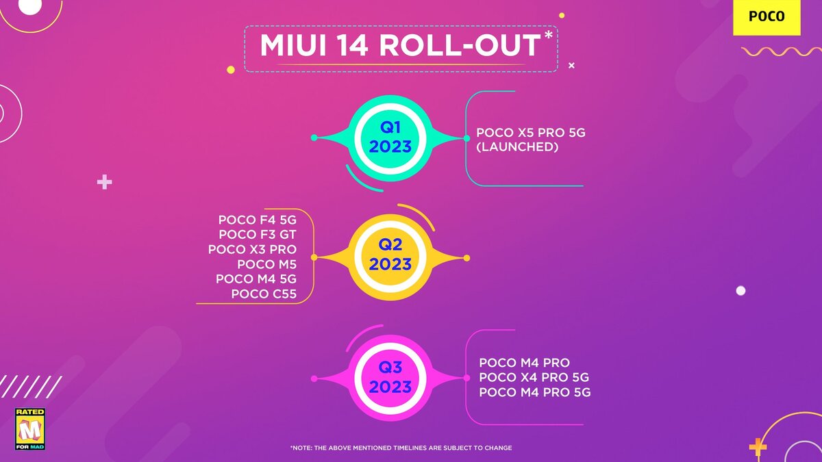 В конце февраля компания Xiaomi объявила график для линеек Xiaomi, Redmi. Однако не упоминались про модели суббренда POCO. Для них китайцы приготовила отдельную очередь и сегодня через Twitter рассказали, когда и какие модели могут получить новую версию MIUI 14. Речь идет о MIUI 14 на базе android 13. Все смартфоны автоматически будут получать новую версию MIUI 14. Всего в список вошли 10 моделей. Первый квартал (январь - март) POCO X5 Pro 5G Второй квартал (апрель- июнь) POCO F4 5G POCO F3 GT POCO X3 Pro POCO M5 POCO M4 5G POCO C55 Третий квартал (июль - сентябрь) POCO M4 Pro POCO X4 Pro 5G POCO M4 Pro 5G Указанные сроки актуальны для индийского региона, распространение в других странах может задержаться (или наоборот, начаться раньше). С вас подписка на мой блог и лайк тут будут много интересно про Xiaomi Хотите додержать канал https://yoomoney.ru/to/410012822877718