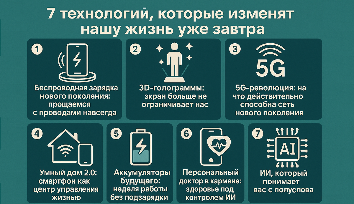 Почему новые модели — это не просто апгрейд камеры, а шаг к технологической революции. Ежегодные анонсы новых флагманов все чаще напоминают игру в цифры: больше мегапикселей, гигабайт и гигагерц. Но настоящие инновации скрываются за пределами спецификаций. 2025 год стал переломным — технологии, которые еще вчера казались фантастикой, становятся реальностью. Что изменилось в 2025: Пример: Xiaomi представила столы со встроенной зарядкой — ваш телефон заряжается, пока вы работаете Прорыв 2025 года: Кейс: Samsung Galaxy Z Fold 7 проектирует 3D-карты для навигации прямо над устройством Реальные преимущества в 2025: Статистика: 80% городов России покрыты 5G, тарифы подешевели на 40% Интеграция в 2025: Пример: Связка iPhone 17 с экосистемой Apple Home управляет 95% бытовых приборов Технологический прорыв: На практике: OPPO Find X8 работает до 7 дней в режиме умеренного использования Медицинские функции 2025: Важно: Данные синхронизируются с вашим врачом в реальном времени Эволюция искусствен