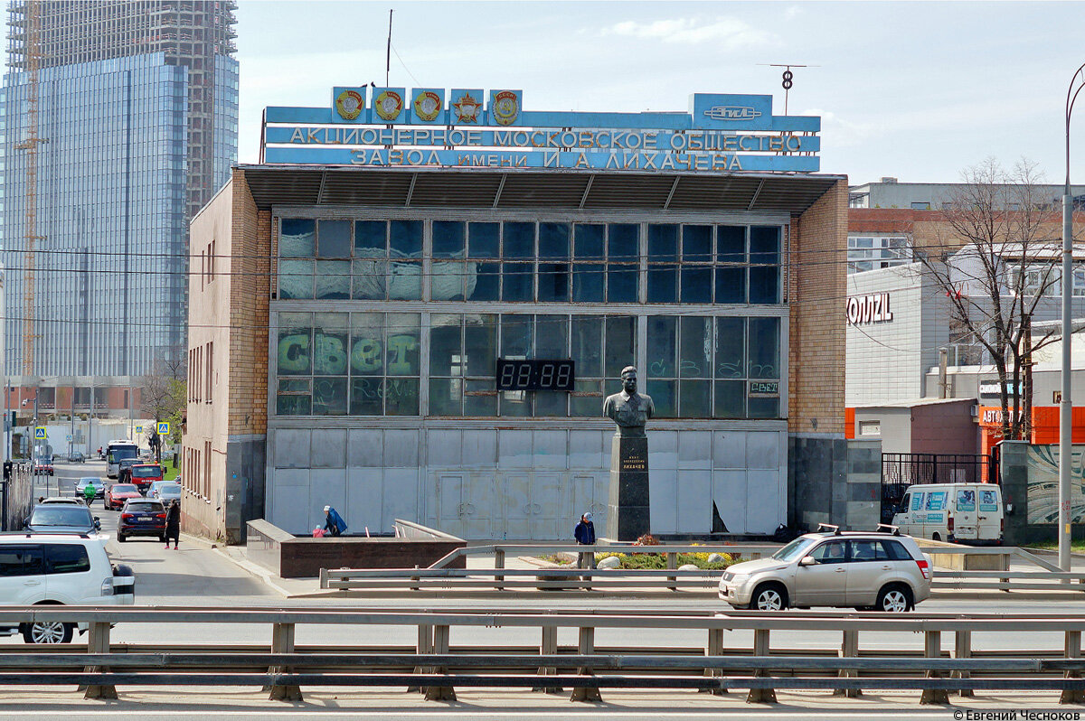 Автозаводская улица, 23к6 - вторая проходная ЗИЛ (1959) и памятник Ивану Лихачёву