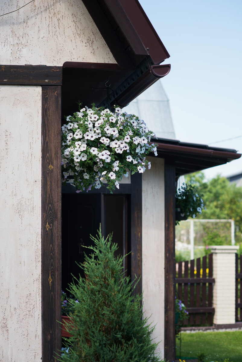 Подвесные цветочные шары это особый вид искусства в саду. Они всегда выглядят эффектно и необычно. Можно встретить разные варианты создания таких шаров, и большинство из них слишком трудоемкие. Мало того трудозатратные, так еще и требуют больших финансовых вложений. Например такие как: скрепить две полусферы, набить землей и посадить в отверстия кустовую петунию. Я перепробовала много разных способов и остановилась на одном, самом удобном. Вот уже 5 лет пользуюсь только им. Всего у меня три таких цветущих шара. Подвешиваю их за крюки к свесам крыши. Полив осуществляю с помощью телескопической насадки для полива, как правило они все с поворотными насадками, что облегчает полив на расстоянии. Для одного такого шара нам понадобится: В этом случае не стоит торопиться с посадкой петунии на рассаду, сеять необходимо не раньше середины марта. Что бы рассада не вытянулась, и кустик был компактный. Вытянутая от недостатка света петуния, просто сломается и будет неравномерно расти. А нам нуж