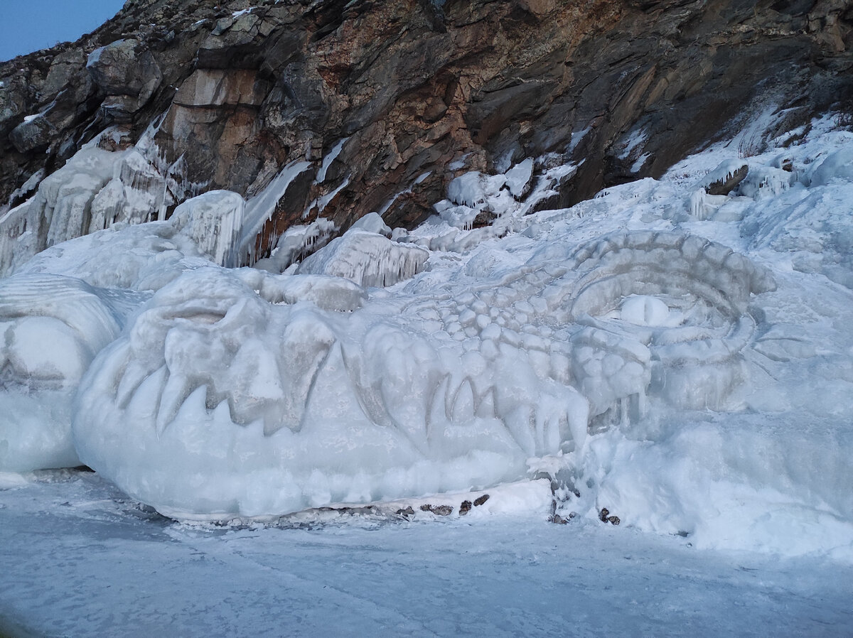 С 13 февраля по 20 марта на Ольхоне проходит фестиваль ледовой скульптуры. После встречи нашего первого заката на Скале Шаманке в Хужире спускаемся на лёд, чтобы посмотреть скульптуры. Особенностью создания скульптур является техника Ледопластика. Особенность этого метода в том, что для создания скульптур берут не готовые куски льда, хотя и такие скульптуры были на фестивале, а используют ледяные наплески. Наплеск в свою очередь образуется в результате замерзания капель волн, которые разбиваются о берег, таким образом получается совместное творчество человека и природы. Работы делают на месте из того, что получается, готовых эскизов нет. 1 километр уникального наслаждения, смотрите сами.