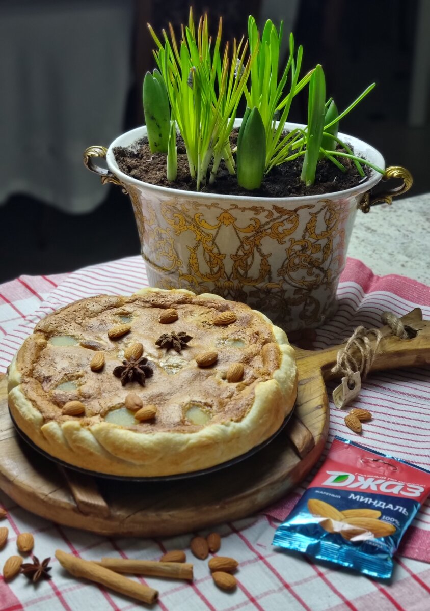 Это очень вкусно! Самое сложное в этом рецепте - найти консервированные груши😂 А с остальным вы точно справитесь! Я использовала в рецепте миндаль "Джаз". Мне очень нравится их правильная обжарка. Люблю со студенческих времен🥰. Я работала и училась, приходила домой уже в 23.00, нормально питаться я просто не успевала. И пакетик орехов "Джаз" в сумке всегда выручал. Ингредиенты: 1. Тесто заранее разморозить. 2. Миндаль размолоть в блендере. Я не чищу. В пироге не заметите разницы😅 3. Сливки взбить с сахаром в плотную пену. 4. Отделить желтки. Белки не пригодятся (пойдут на омлет или меренгу). 5. Добавить к сливкам желтки, орехи, корицу и все перемешать. 6. Раскатать слоеное тесто в пласт и вырезать круг по форме для запекания с запасом на высокие бортики. 7. Разъемную форму 22-26 см смазать сливочным маслом. 8. Выложить тесто в форму . 9. На него положить четвертинки консервированных груш и залить сливочно-ореховой массой. 10. Выпекать при температуре 180°С 30 минут. Подавать, украси