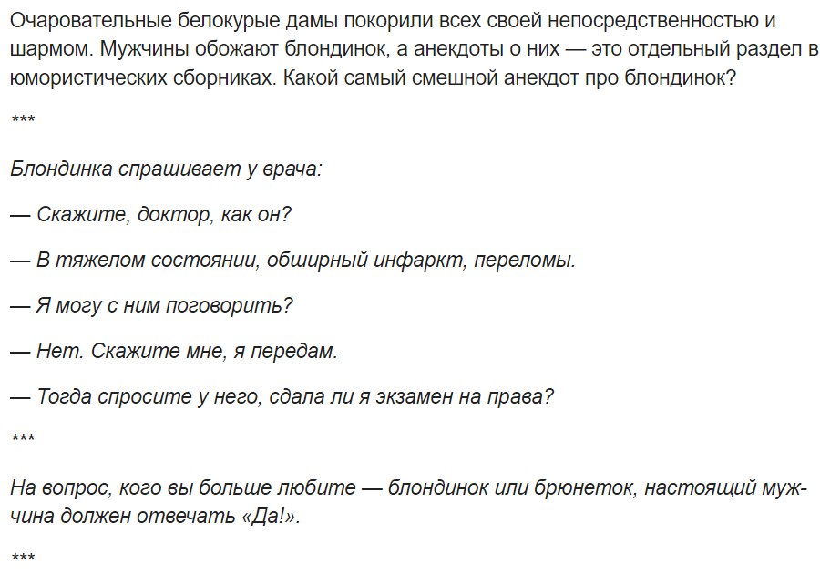 Да простят меня женщины - топовые шутки про блондинок, которые заставили меня улыбнуться