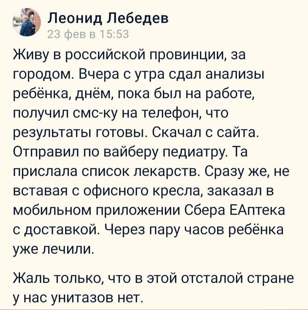 И правда. Сама всегда переживаю. В космос летаем, а нужду приходится справлять в ведро. Вот как так? Спасибо, сейчас кое-что начало поступать из великой древней страны. Сами бы мы эту проблему, конечно, не решили. А вот благодаря братьям - еще начиная с катеров - стало понемногу получаться. И я теперь знаю, как выглядит чайник! Сначала-то на костре пытались его греть, но это, оказывается, так не работает. Вот так понемногу и цивилизуемся, да. Вообще-то унитазы и их изготовление - военная тайна. И когда братья бег.. понемногу отступают на более выгодные стратегические позиции или эвакуируются, они уносят ее с собой. Как тот вересковый мед! Вот что это за белое гладкое кольцо, для чего оно? У нас, говорят, теперь не мобилизуют тех, у кого дома есть унитаз. Ибо это означает, что человек уже сражался и добыл его в бою. Наконец-то и у нас будет как в Европе! Это вам не космические корабли мастерить, и на Госуслугах на прием записываться. Это - цивилизация.