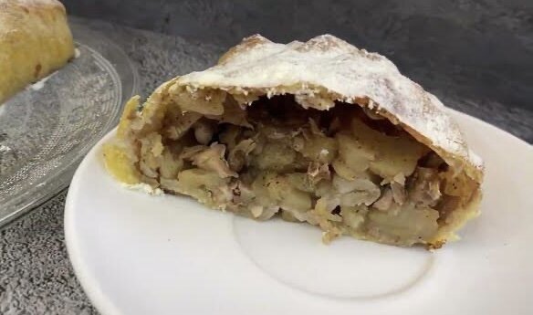 ПП постный штрудель с яблоками и орехами, быстро и вкусно, без сахара.