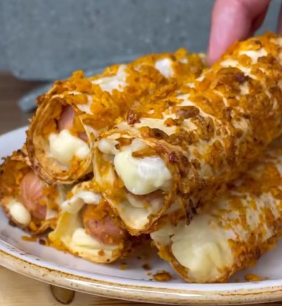 Понадобится: Сосиски Лаваш Яйца Чипсы Сыр Готовим Лаваш нарезаем на полоски. Сыр на кусочки. Теперь сосисоны с сыром заворачиваем в лаваш, макаем в разбитые яйца, потом в чипсы. И в духовку при 180гр на 10 мин. Приятного аппетита.
