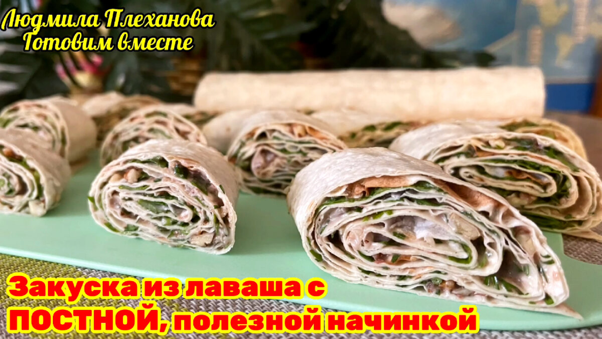 Эту постную начинку для закуски из лаваша я придумала сама (нигде не подслушивала 😉). Рулетики получились вкусные, сытные (и недорого)