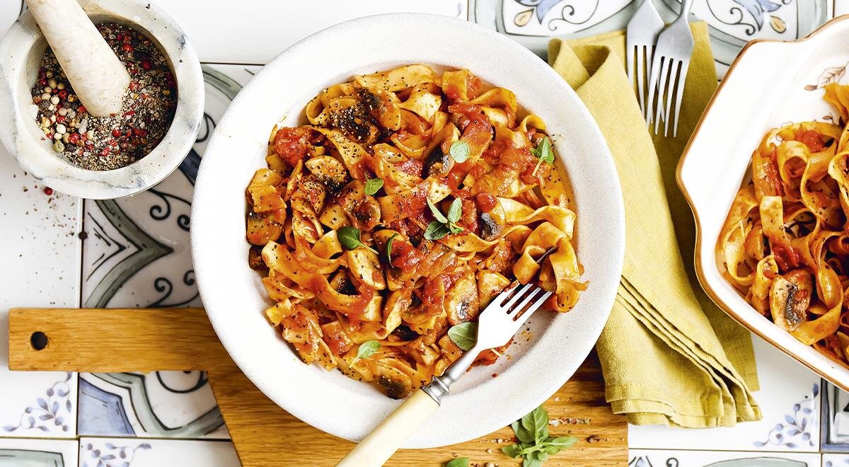 🍝 Вы когда-нибудь пробовали настоящую грибную пасту болоньезе? Это не просто обычный соус из грибов, это настоящий кулинарный шедевр, созданный для тех, кто любит насыщенные вкусы и натуральные ингредиенты. Сочетание свежих грибов, ароматных трав и специй с помидорами создает неповторимый вкус, который заставит вас забыть обо всем на свете и полностью погрузиться в мир еды. Ингредиенты: 400 г тальятелле 200 г шампиньонов 200 г рубленых помидоров в с/с 1 морковь 1 луковица 2 зубчика чеснока 3 веточки базилика 4 ст. л. растительного масла 2 ст. л. бальзамического уксуса 1 ч. л. сахара 1 ч. л. паприки соль свежемолотый черный перец Пошаговый рецепт ⬇️ Шаг 1. Разогрейте духовку до 200 °C. Нарежьте лук кубиками, грибы – ломтиками. Морковь натрите на терке. Сложите овощи и грибы в жаростойкую форму, полейте растительным маслом, посыпьте паприкой и свежемолотым черным перцем, посолите и запекайте в центре духовки в течение 15 мин. Шаг 2. Выньте форму из духо