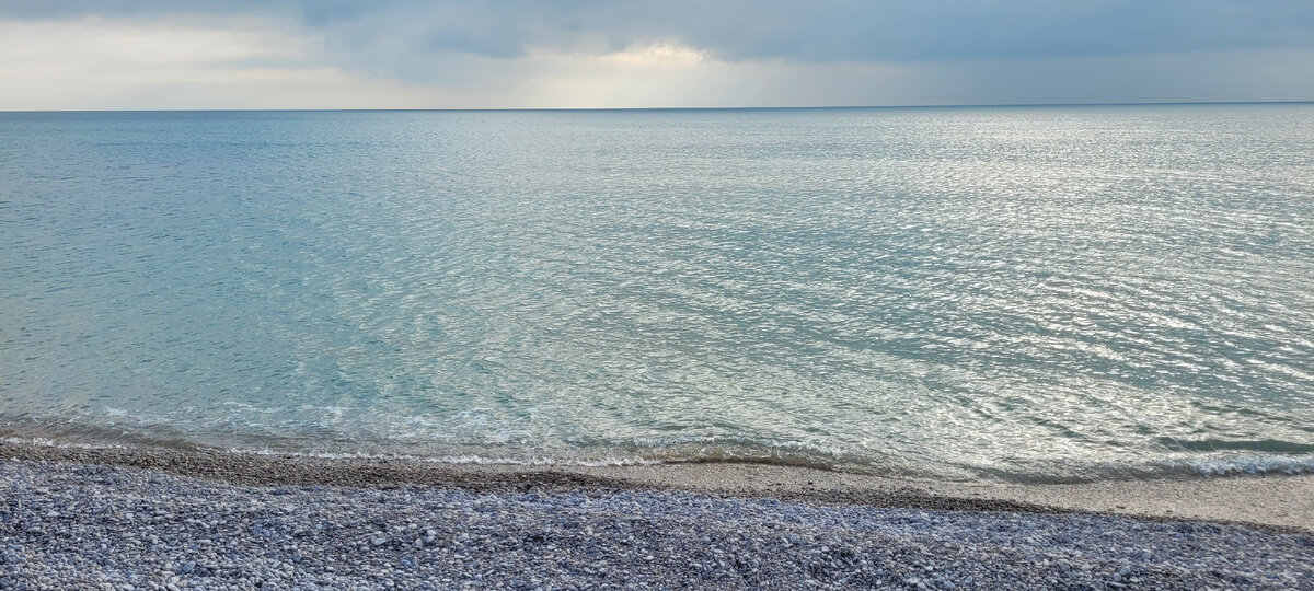 Сегодня первое воскресенья весны, нам не сидится на месте и мы отправляемся на берег двуякорной бухты, которая обосновалась между мысом Святого Ильи и мысом Киик-Атлама. Подъезжаем на стоянку у самого моря с права есть небольшой лодочный причал, а с левой стороны расположены эленъги под названием Старт. Выходим из машины и какая красота, море лениво шевелит своей поверхностью и дует несильный но уверенный ветерок. Взору открывается бескрайнее, самое синее чёрное море моё. Насладились этой красотой и неспеша идем по берегу дальше. Проходя мимо элингов Старт видим, а море то не всегда было такое спокойное и ласковое. Сильными волнами смыло часть берега перед эленгом и металлическая стойка конструкции теперь висит в воздухе, а когда-то она была забетонирована в землю берега. А вот отколовшаяся глыбы склона и рухнувшая на берег, хорошо что никого не оказалось на месте её падения. Обходим её и продолжаем неспеша идти по каменистому берегу. Видели вы такое, камень с рогами. Они ростут у не