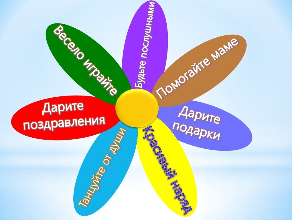 Автор: Толмачева Т.М., музыкальный руководитель МБДОУ «ДСОВ № 76». Ход мероприятия Ведущий: Здравствуйте, дорогие мамы, бабушки и гости нашего праздника! Весна пришла, а это значит, Что женский день пора нам отмечать, Всем мамам, бабушкам и сестрам счастья, Желаю вам всегда я расцветать! И сегодня в нашем зале расцвел волшебный цветок. В каждом его лепестке спрятаны секреты настоящего праздника. Предлагаю вместе их узнать. Итак, первый лепесток дает нам наставленье – Дарите сегодня свои поздравления! 1-Й ЛЕПЕСТОК – «ДАРИТЕ ПОЗДРАВЛЕНИЯ» 1 ребенок: Этот праздник цветами украшен, Огоньками улыбок согрет. И сегодня мамам нашим - Горячий, весенний привет! 2 ребенок: Мы подарим вам сегодня, Радость, шутки и цветы, Давайте мы начнем скорее Весенний праздник красоты! 3 ребенок: Милые мамочки, милые бабушки, Мы говорим не тая, Вы наши лучшие, самые добрые, Самые близкие в мире друзья! 4 ребенок: Мы для вас родных, любимых Дружно песню пропоем. Пожелаем дней счастливых, Все вместе: Поздравляем