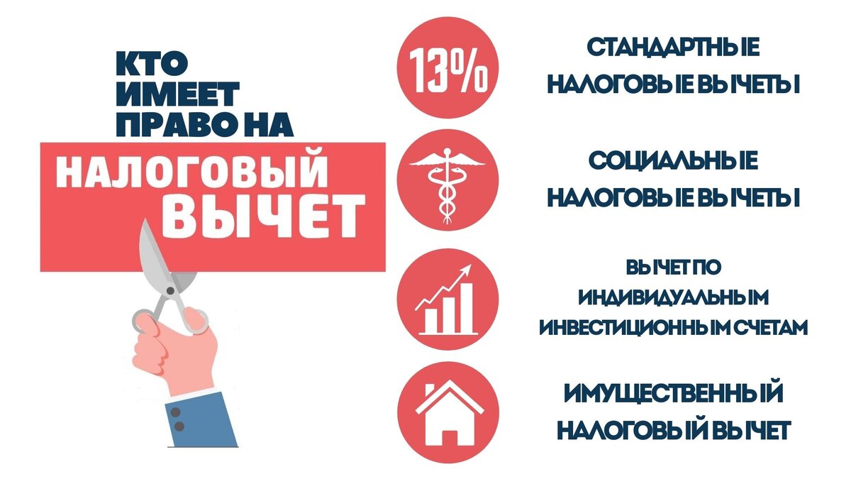 Каждый человек с официальным доходом, с которого удерживают НДФЛ, имеет право на налоговый вычет. Подоходный налог (НДФЛ) – налог, который удерживается с доходов физических лиц. Под налогообложение попадают практически все выплаты: зарплата, премии, выплаты по гражданского-правовым договорам, выигрыши в лотерею, дивиденды, доходы от продажи имущества. Часть уплаченного за год налога можно вернуть, если оформить налоговый вычет. Существуют следующие виды налоговых вычетов: 1. Стандартные – их получают родители на своих детей и льготники, например ликвидаторы последствий аварии на Чернобыльской АС, Герои России, инвалиды I и II группы (ст. 128 НК РФ). 2. Социальные – можно получить, если в течение года у налогоплательщика были расходы на образование, лечение, страхование жизни или благотворительность, фитнес и занятие спортом (ст. 219 НК РФ). 3. Инвестиционные – эти вычеты могут получить те, кто инвестирует на фондовых рынках через индивидуальный инвестиционный счёт. Есть два типа вычето