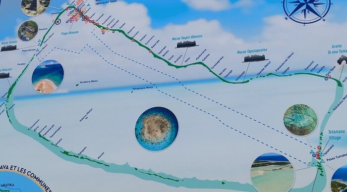 Если очень схематично, то вот так выглядит Факарава, то, что зелёное, есть - суша, мы стоим слева сверху, оно и понятно судя по карте, там сосредоточены вся жизнь.