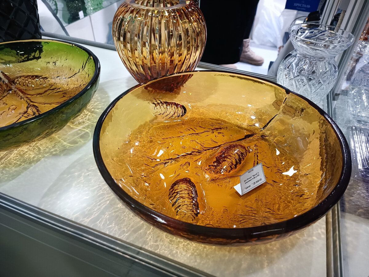 Красиво, но как же дорого! Примерно такие впечатления у меня обычно остаются после посещения традиционной ярмарки народных промыслов "Ладья", дважды в год проводящийся в Москве. Однако, судя по толпам - а в этот раз я попала на ярмарку в выходной день - это мало кого смущает. Народу много, буквально не протолкнуться, и все что-то покупают. Хотя многие, возможно, приходят, как и я, полюбоваться на красоту, которую творят русские мастера со всех уголков страны. Покажу, что понравилось мне в этот раз больше всего, и сколько это примерно стояло. Весенняя "Ладья" всегда скромнее той, что проходит в декабре. О последней зимней я рассказывала ЗДЕСЬ. Товаров намного меньше, производителей тоже, потому что в декабре действительно было представлено намного больше вполне бюджетной продукции, той же керамики. Да и я не ушла тогда без покупок. Всегда любуюсь стендом Гусевского хрустального завода. Как не залюбоваться этой сверкающей хрустальной красотой. Дорого? Очень! Простая статуэтка из цв