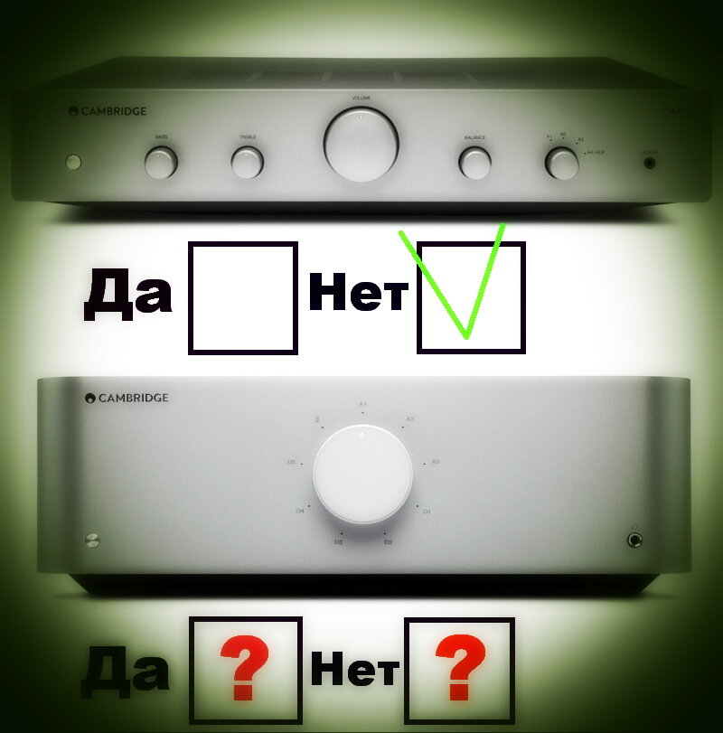 И даже то, что в качестве абстрактного примера взяты два усилителя (дешëвый и дорогой) марки Cambridge - отчасти совпадение. Вместо Cambridge могли быть усилители Yamaha, Denon, Rega... да практически любого (любых) производителей. В том числе и разных (дешёвый - одного производителя, а дорогой - другого). Просто лет 15 назад именно на примере Cambridge Audio я прошёл практически всю линейку тогдашних компонентов серии Azur: от начальных, 340-х, до верхних 840-х и поэтому знаю не только то, в чем отличия между самым старшим и самым младшим, но и в чем отличия каждой модели друг от друга.