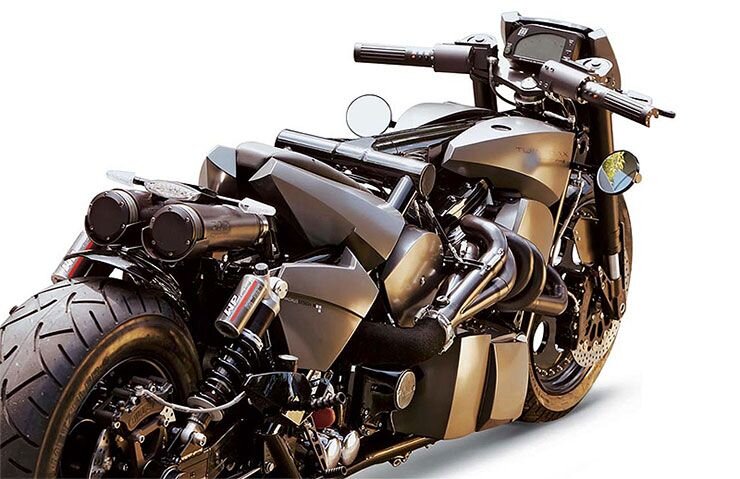 В арсенале Немецкого мотоциклетного управления есть байк, под названием «Twin Trax», который вызывает восхищение. Этот вытянутый байк оснащен не одним, а двумя 80-сильными двигателями Harley-Davidson/S&S Evolution объемом 1,35 л, а его водитель может лежать почти полностью горизонтально. Я думаю, можно с уверенностью предположить, что он вдохновлен старинными мотоциклами для дрэг-рейсинга, многие из которых использовали двухмоторную установку с длинной центральной балкой, позволяющей гонщику лежать почти горизонтально. Мотоцикл, построенный и принадлежащий Кристофу Мадаусу в Кельне, Германия, имеет колесную базу 2060 мм (6,76 фута), общую длину 2710 мм (8,9 фута) и высоту 990 мм (3,25 фута). . Нет ни слова о том, насколько быстро этот малыш едет или даже какой крутящий момент он генерирует. Но, учитывая, что его мощные двигатели соединены с 5-ступенчатой коробкой передач HD с шестернями Эндрю, мы считаем, что он составит достойную конкуренцию многим. Передние и задние колеса оснащены