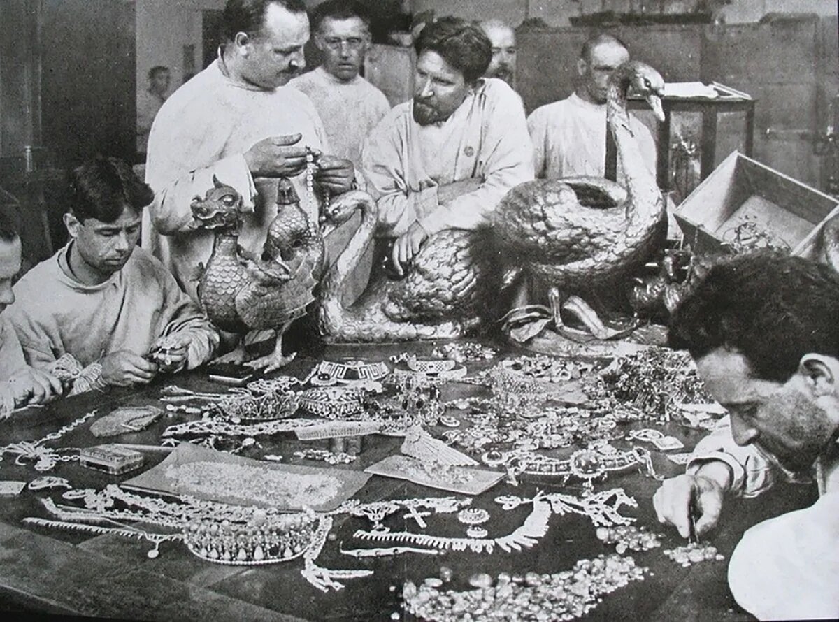 Слуга Юсуповых Григорий Бужинский умер от пыток, но так и не выдал московский тайник. Князья Юсуповы были богатейшей семьёй России. Княгиня Зинаида Юсупова, мать красавца-сына Феликса с репутацией плейбоя, славилась на всю Европу своими бриллиантами. В их числе были серьги Марии-Антуанетты, диадема неаполитанской королевы Каролины Бонапарт, знаменитая жемчужина «Пелегрина», работы знаменитых ювелиров Болина, Картье, Фаберже… Весной 1917 года Юсуповы перебрались в Крым и отсюда навсегда уехали из России. Однако до того князь Феликс дважды побывал в революционном Петрограде. Один раз с помощью верного слуги вывез из дворца на Мойке и перепрятал в тайнике московского дома большую часть фамильных драгоценностей и скрипку Страдивари. Во второй раз забрал некоторые картины. Бриллианты и старая живопись пригодились в эмиграции. Тем временем революционной России нужно было золото, и много: выплаты контрибуции Германии по Брестскому миру, финансирование мировой революции, расчёты по долгам неза