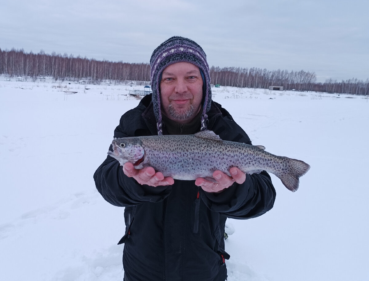 Сразу скажу - это был мой первый опыт ловли форели со льда, так что пост на звание "обучающий" не тянет.) Итак, давно уже хотел попробовать сварить уху по-фински, но все откладывал на потом, так как арийные сезоны в последнее время стали куцыми и рыбы для экспериментальной кулинарии попросту не было. А тут думаю все, пора действовать. Нашел ближайший платник с конопатой и поехал щекотать фортуне нервы. Немного настораживал разговор с хозяином водоема, который сказал что клев как на Черных камнях, а навеска от 1,5 кил и выше. Учитывая что планировалась поимка двух хвостов (один в уху и один засолить к предстоящему 8 марта), то все мероприятие могло закончится в считаные минуты. Приезжаю на место, где меня уже встречают. Сам пруд вааще маленький, даже не знаю с чем его сравнить.... Глубины примерно 2-3 метра. При плотной посадке, рыбы здесь должно быть как селедки в бочке. Сопровождающий рекомендует ловить в районе дна. Достаю камеру и начинаю просмотр горизонтов. В сам