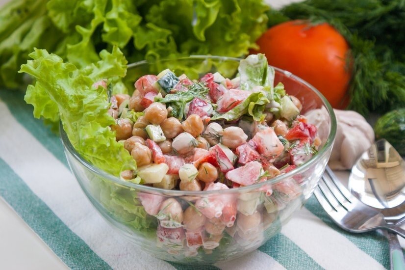 Нам понадобится: Лично для меня овощной салат с нутом это не только салат, это два в одном: гарнир с салатом. Нут придаёт салату сытности и поэтому порция этого салата заменяет полноценное блюдо. Советую всем любителям нута попробовать приготовить по этому рецепту, надеюсь, что вам понравится. 1. Нут залить водой и оставить на ночь. 2. Затем воду слить, залить свежей водой, посолить и варить до готовности.