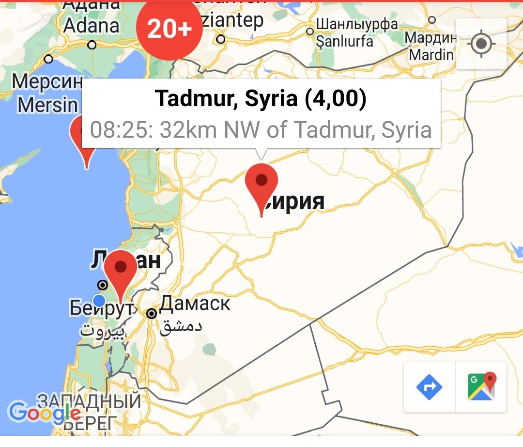 Сегодня в 9-25 по московскому времени достаточно сильно тряхануло в сирийской Пальмире. Слава Богу, не в самом городе, а примерно в30 км от него. Потому как там и поврежденных в результате боев домов полно, они могли попадать. И потому как мало ли как это могло бы отразиться на том немногом, что осталось от античного города. Это не первый раз, когда в этом районе наблюдается сейсмическая активность. В 2016 году там было землетрясение силой в 4.4 балла. Тогда толчок был в 18 км от древнего античного города. А землетрясение 1089 года вообще разрушило многое, что еще оставалось с древних времен. Будем надеяться, что на этот раз обойдется и ничего сильного там не будет. Ибо, что называется, Пальмире только этого-то и не хватало....