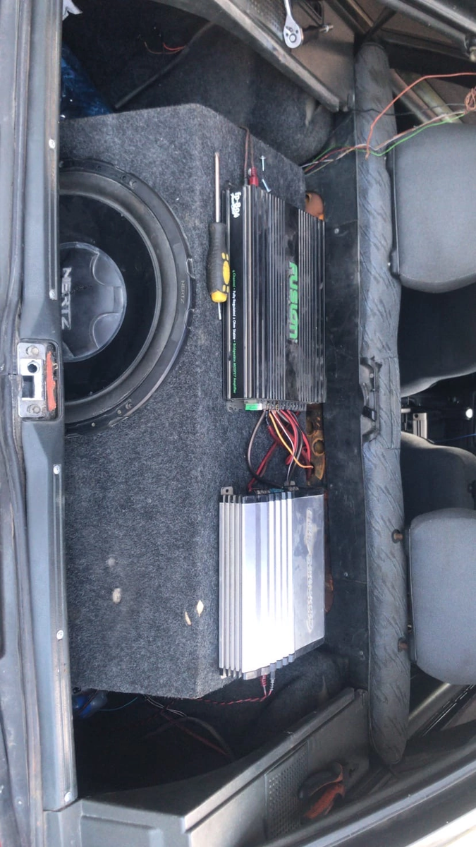 Установка музыки два усилителя две колонки прайд оникс 2 бочка герц 900 ват и голова пионер циклоп