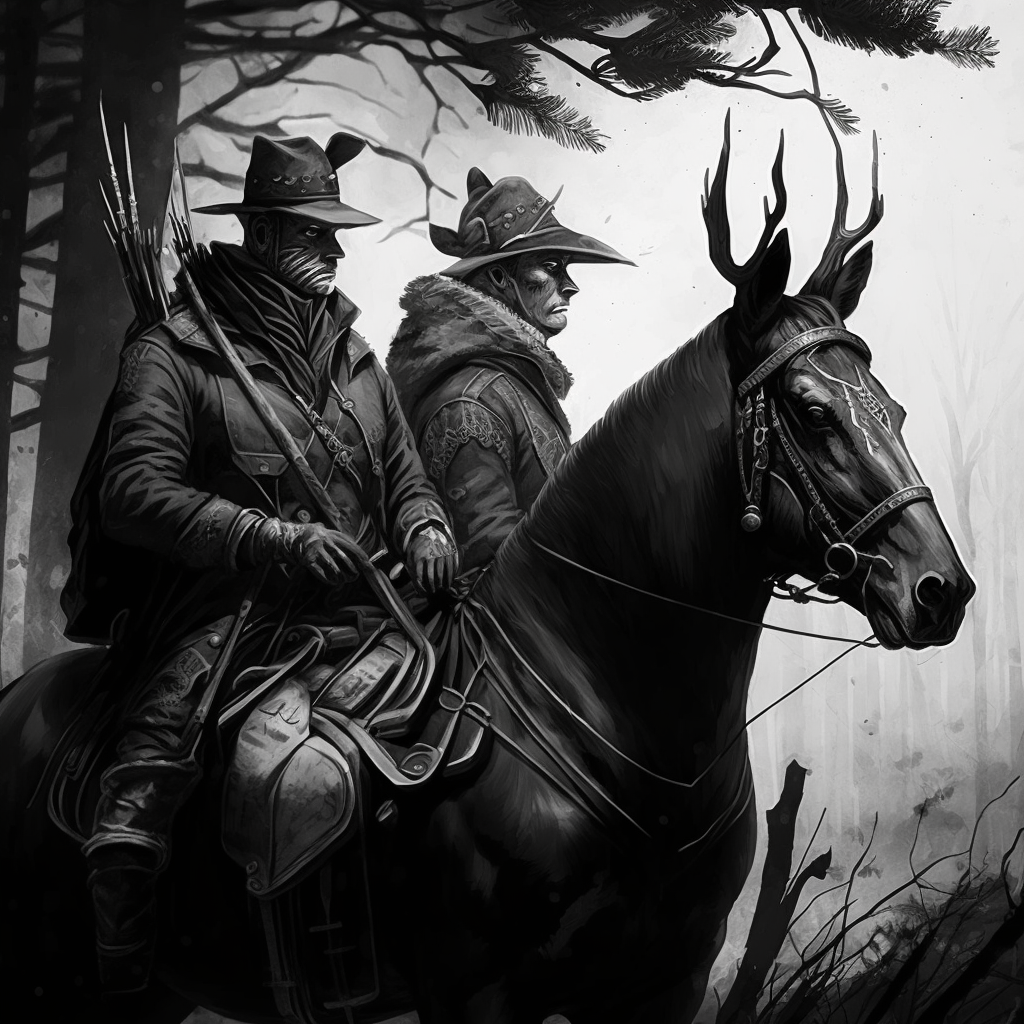 Однажды, в удаленном лесу, жили два охотника по именам Джек и Том. Они были лучшими друзьями и охотились вместе много лет. Джек был старше и имел много опыта в лесу. Он знал, где можно найти лучшую дичь и как ее отследить. Том был моложе, но обладал много энергии и энтузиазма. Он любил ощущение охоты и всегда был готов учиться у Джека. Однажды, когда они были на охоте, они наткнулись на большого медведя. Медведь был свиреп и агрессивен, и они знали, что им нужно быть осторожными. Джек взял на себя лидерство и сказал Тому остаться позади. Он медленно подошел к медведю, держа свое ружье нацеленным на него. Медведь встал на задние лапы и ревел, но Джек не отступал. Он прицелился и выстрелил, попав медведя в плечо. Медведь упал на землю, раненый, но еще живой. Том бросился помочь Джеку. Они работали вместе, чтобы добить медведя, и когда он наконец умер, они вздохнули с облегчением. Они никогда раньше не сталкивались с таким опасным животным, и оба были потрясены этим опытом. С того дня их