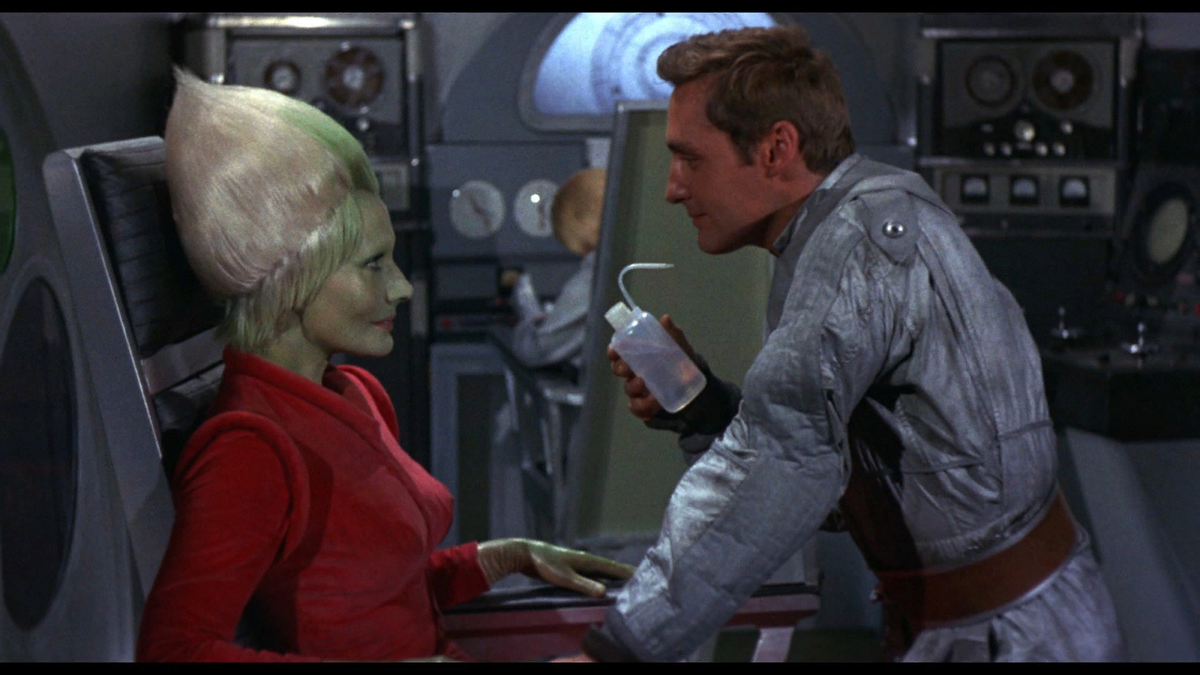 Спасённая инопланетянка оказалось не только зелёного цвета, но ещё и вампиром. И в условиях герметичного корабля с экипажем из трёх человек это было не самое приятное соседство. В результате первая часть фильма чуть ли не дословно дублирует советский фильм, только актёры главных ролей заменены на американских. А во второй половине зрителя ждёт настоящий космический хоррор, который вполне можно считать предтечей "Чужого".