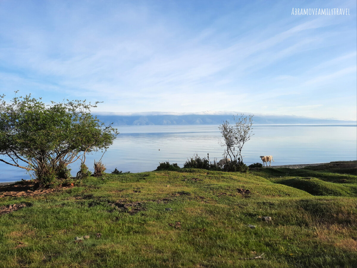 Сейчас я к этому была готова, но вставать с утра от их шума и спасать территорию от их г..на совсем не хочется. Персей никогда коров не видел. Поэтому он и в шоке, ему и интересно, он облаивает их, защищая территорию, а все вокруг спят... Семья потихоньку просыпается. И тут же по поляне стали ходить люди, которые проверяли допуски в охранную зону Ольхона, которая практически везде.