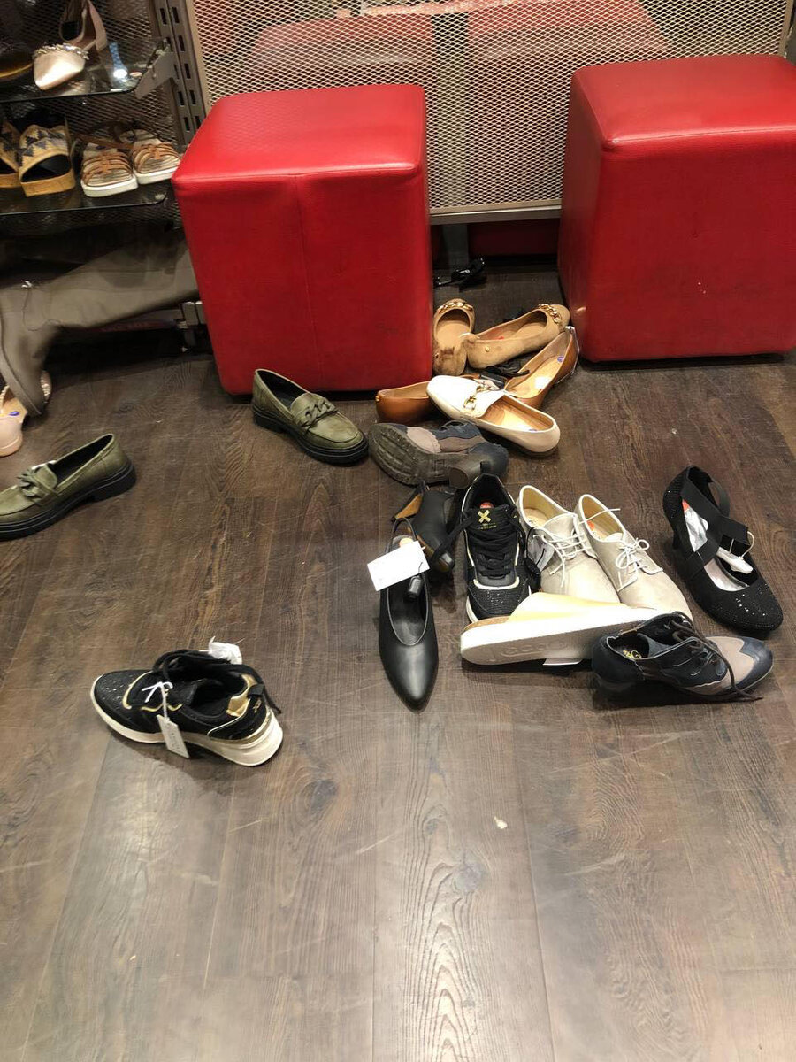 На фотографии валяется абсолютно новая обувь, которую мерили немки. Мерили, мерили, более часа мерили, аж затошнило за ними наблюдать, ничего не купили, в результате, бросили всё что мерили на полу и ушли…