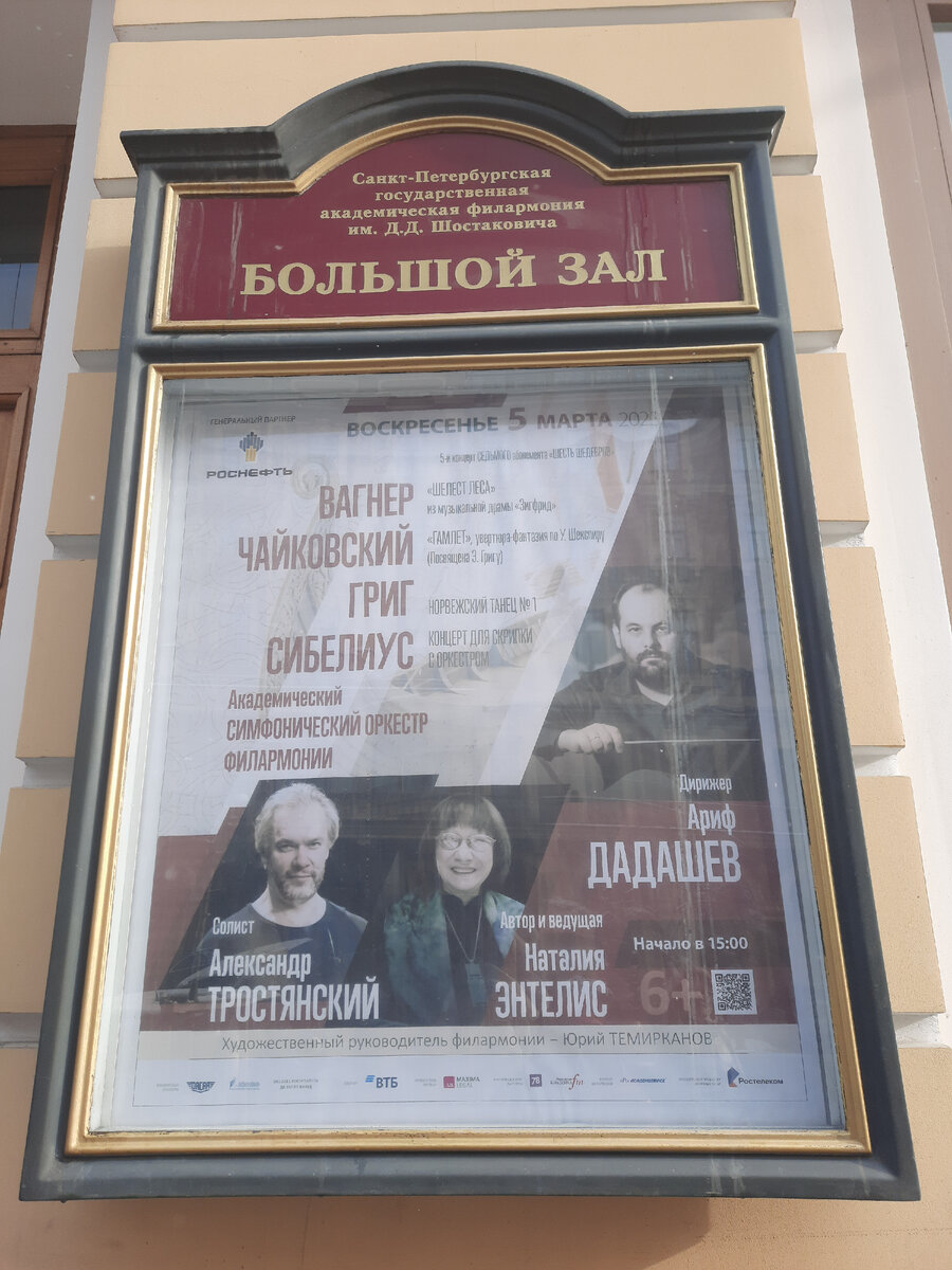 День сегодня серый, сырой, хмурый, вялый. И если бы на наш поход в Филармонию, то было бы совсем грустно. Как же хорошо, что можно пойти днём на концерт и послушать прекрасную музыку вместе с родным человеком. Испытать и чувство прекрасного и чувство родного тепла. О Филармонии я не раз тут рассказывала. Здесь очень красиво. Я и в этот раз не удержалась пройтись по всем её помещениям. И уже не знаю в который раз, всё это сфотографировать. Мы с Галей и в этот раз на хоры билеты купили. Мне там очень нравится. Цена демократичная. Слышно великолепно (звук прямо от музыкантов вверх к нам стремится)! А главное- видно хорошо дирижёра. Наблюдать с этого ракурса за его работой необычайно интересно! Сегодня было особенно великолепно! Сегодня Ариф Дадашев так дирижировал, что глаз невозможно было от него оторвать. Я люблю слушать музыку в таких местах, закрыв глаза. Но сегодня этого не удалось. Дирижёр исполнял просто настоящий танец. У него всё работало- руки, ноги, тело. Он даже подпрыгива