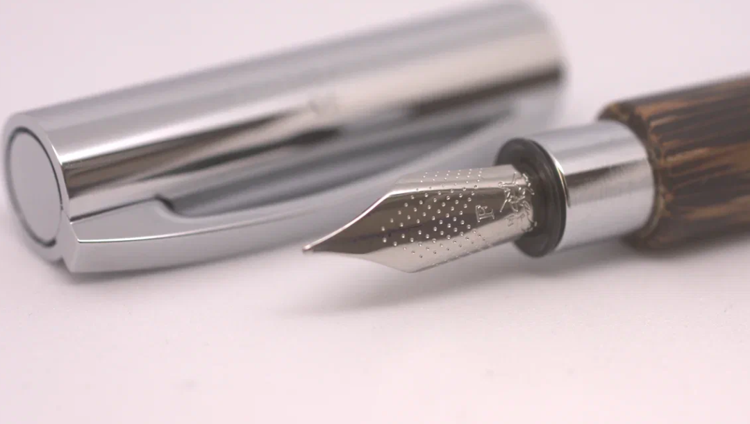 Большинство ручек Faber-Castell имеют сдержанный дизайн и весьма похожие перья. Но бывают и исключения. Коллекция Ambition имеет баррели, изготовленные из разных пород дерева, в частности эта модель - из кокоса. Внешний вид Дизайн ручки, можно сказать, прост и аскетичен, простая цилиндрическая форма: и баррель, и колпачок. Изюминкой ручки является баррель, изготовленный из кокосового дерева. Есть модели разных систем: перьевая, шариковая, роллер. Мне досталась перьевая, и она мне сразу понравилась. Колпачок, хоть и прост, но весьма элегантен и, как и все детали ручки, имеет зеркальную полировку. Кокосовая часть придает ручке особый шарм, который делает ее какой-то теплой и уютной. Перо Перо стальное, вполне стандартное для ручек Faber-Castell. Не сказать, что имеются какие-то изыски, но имеются традиционные точечки, маркировка толщины пера и изображение рыцаря. Плюс та же отличная полировка. Диапазон толщин также вполне стандартный: есть и F, и M, и это европейские стандарты, так что т