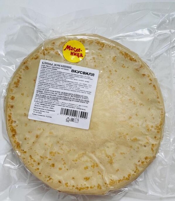 Блинчиков много, но и стоимость очень высокая, я считаю. Хотя время дороже. Блины ВкусВилл очень хорошо пахнут, как домашние на молоке.